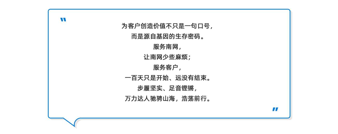 一切都沒有標(biāo)準(zhǔn)答案,“服務(wù)南網(wǎng) 百日攻堅”行動就像年輕的戰(zhàn)場,懷抱“成則一戰(zhàn)成名,敗則曇花一現(xiàn)”的壯懷激烈,邁向征途!