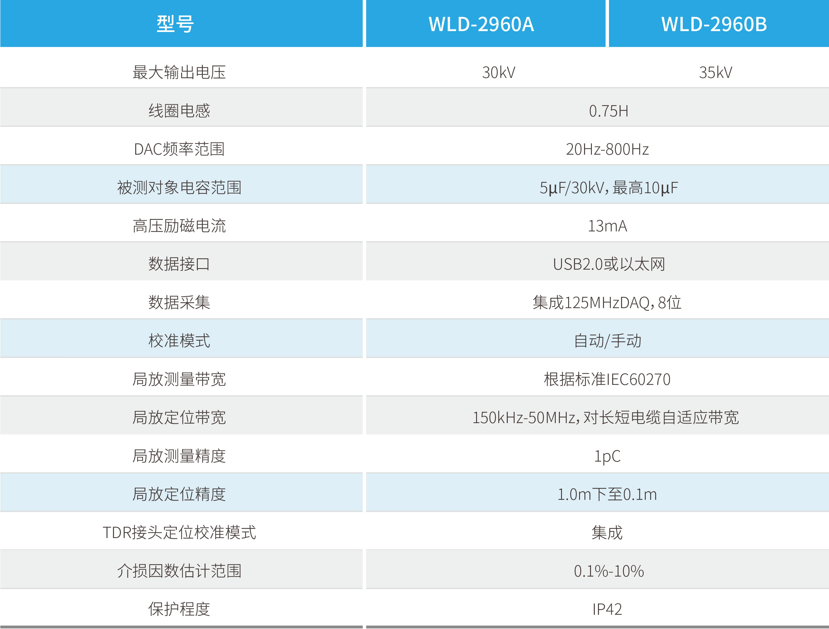 主要用于識別、評估和定位中壓電力電纜本體和附件中的局部放電缺陷。通過輸出峰值30kV/60kV的阻尼振蕩交流測試電壓,對運行電纜進行狀態監測,以防老舊電纜出現突發性擊穿故障;對新敷設電纜進行測試,有效控制施工質量。