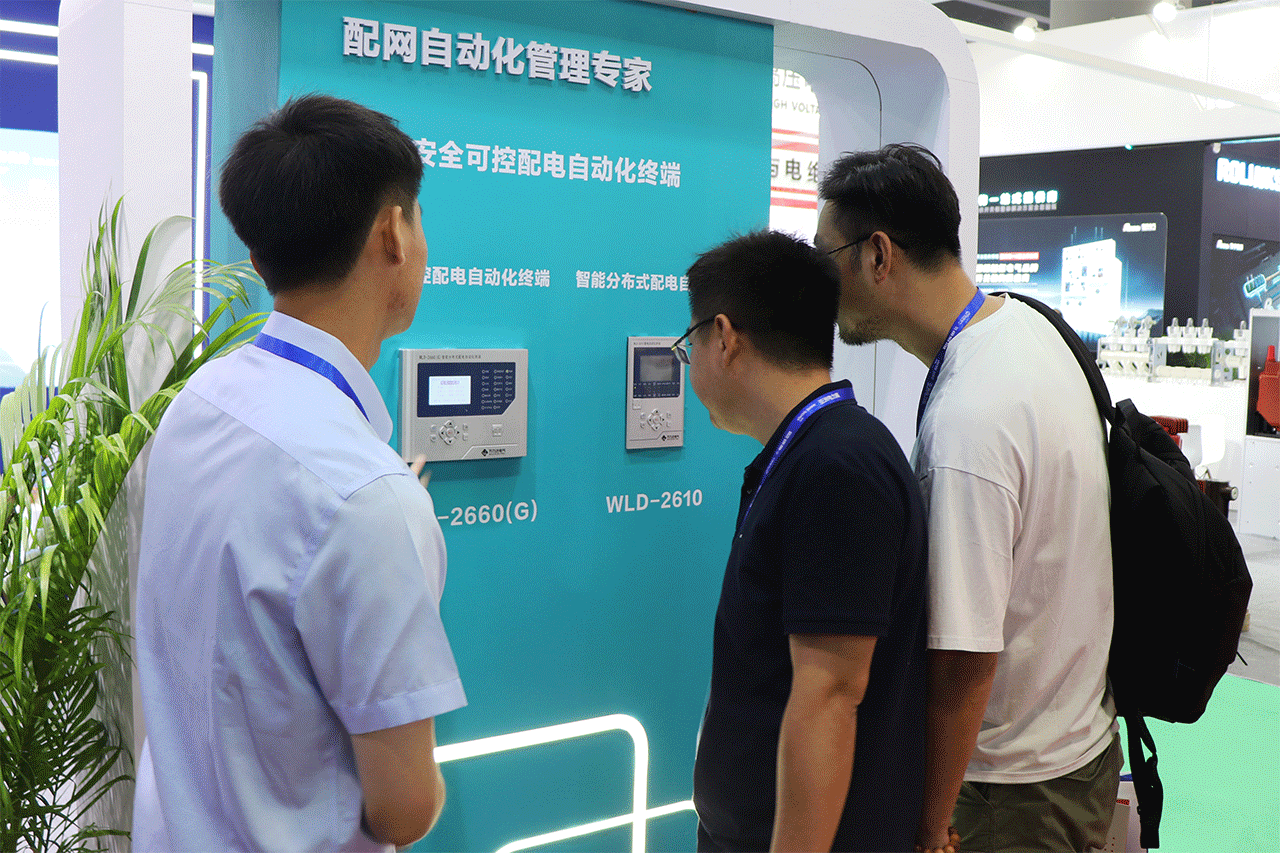 “另外,可以到這邊看看我們兩款配電自動化終端”。技術人員將觀眾引導至另一產品展示區域,配合操作講解產品功能特點。
