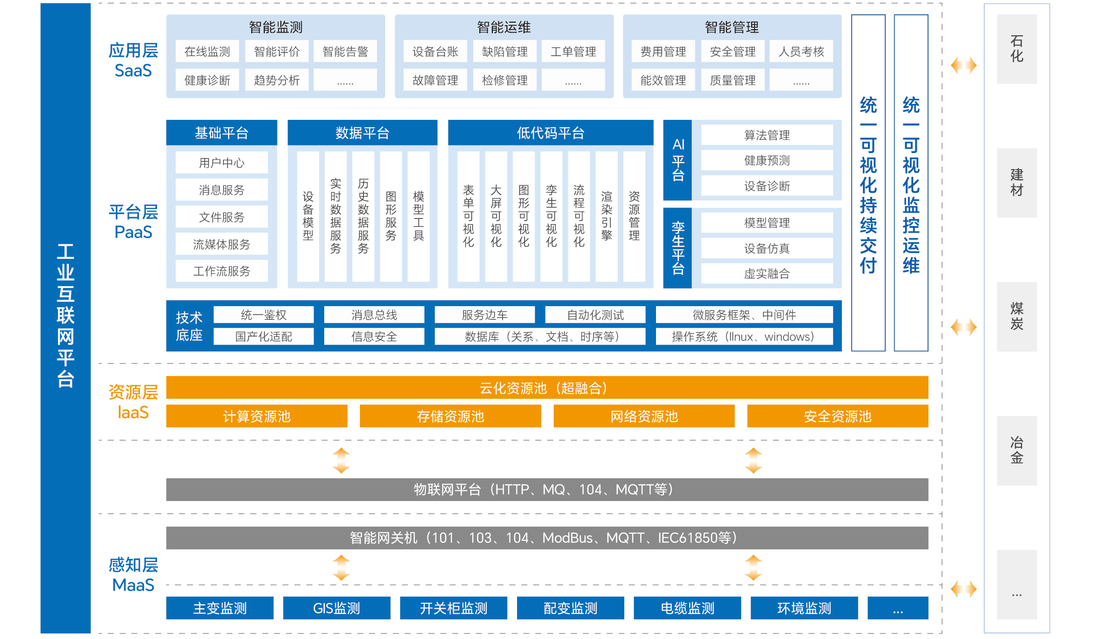 電氣智能化系統(tǒng)以工業(yè)互聯(lián)網(wǎng)平臺為基礎(chǔ),圍繞電氣設(shè)備的智能監(jiān)測、智能運維、智能管理三大業(yè)務(wù)核心構(gòu)建的系統(tǒng),主要服務(wù)于工業(yè)企業(yè)的電氣運維及管理人員,通過對電氣設(shè)備狀態(tài)的預(yù)知、預(yù)測、預(yù)判,實現(xiàn)節(jié)人、節(jié)能、節(jié)事、安全生產(chǎn)的目的,滿足工業(yè)企業(yè)數(shù)字化、智能化的建設(shè)需求。