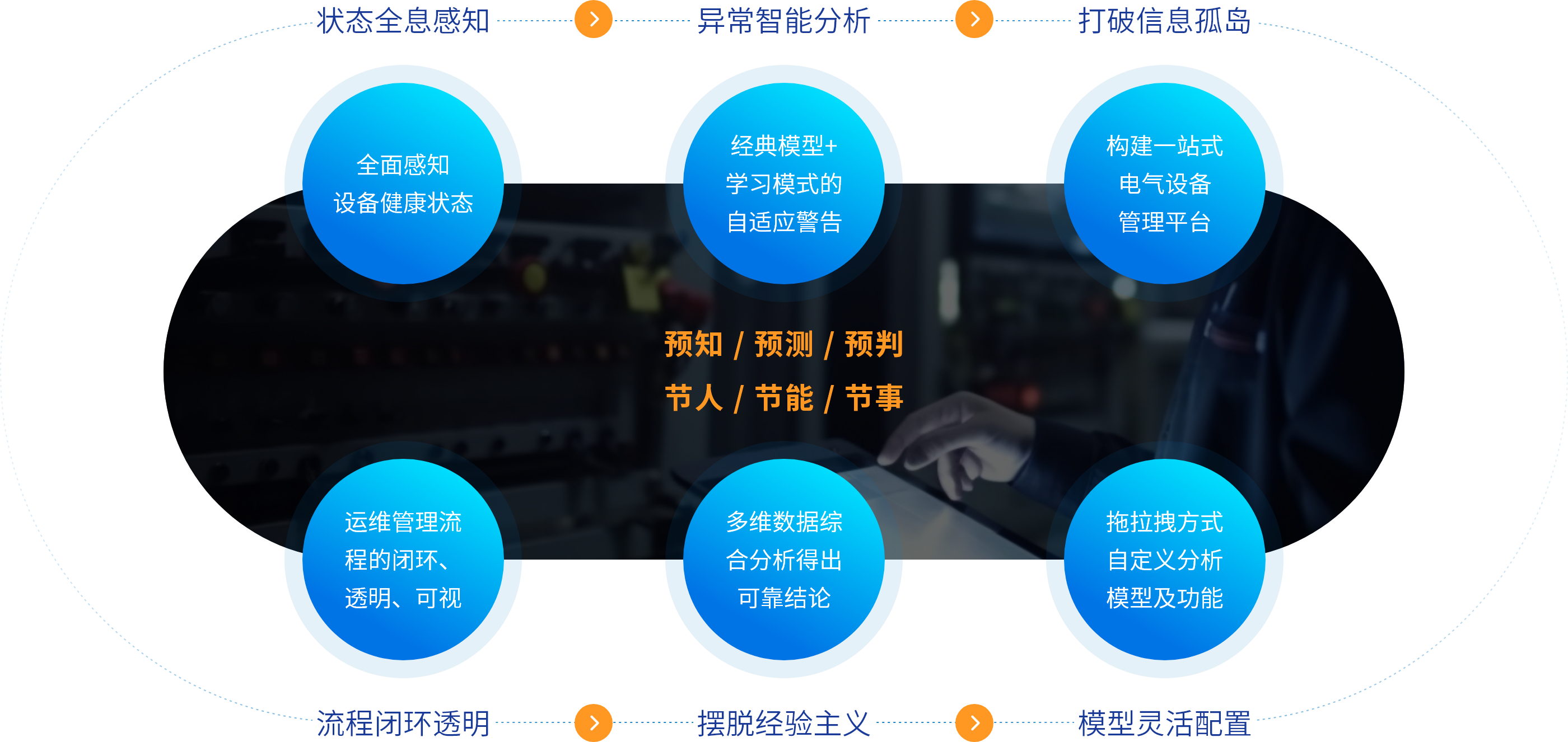對比傳統(tǒng)運維方式,電氣智能化系統(tǒng)可以使設(shè)備內(nèi)部運行狀況更加透明,并實現(xiàn)多維度的設(shè)備健康度評估,從而有效擺脫經(jīng)驗主義,提高巡檢質(zhì)量與效率,減少異常的誤報及漏報,在設(shè)備故障早期及時發(fā)現(xiàn)設(shè)備隱患,減少非計劃停機,提高運維管理水平的智能化系統(tǒng)和企業(yè)的綜合經(jīng)濟效益。